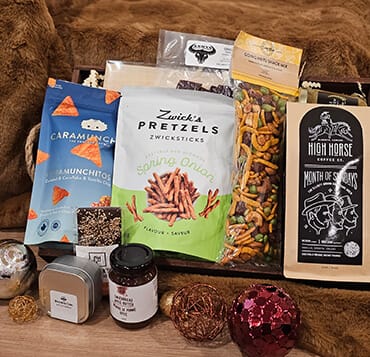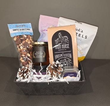 Create your own holiday magic with TimeSquared’s Custom Gift Baskets, a favorite in Edmonton, Alberta. These baskets are a canvas for your imagination, allowing you to blend a variety of gourmet treats to suit any taste or occasion. Whether it’s adding a touch of local Alberta flavor with items like Highhorse Coffee and Going Nuts Snack Mix, or indulging in international luxuries like Lindt Truffles and Castello Brie, the choice is yours. Perfect for personalizing corporate gifts or crafting a unique present for someone special in Edmonton, our Custom Gift Baskets are the epitome of thoughtful gifting. Experience the joy of creating a gift that’s as unique as your recipient, right here in the heart of Alberta.